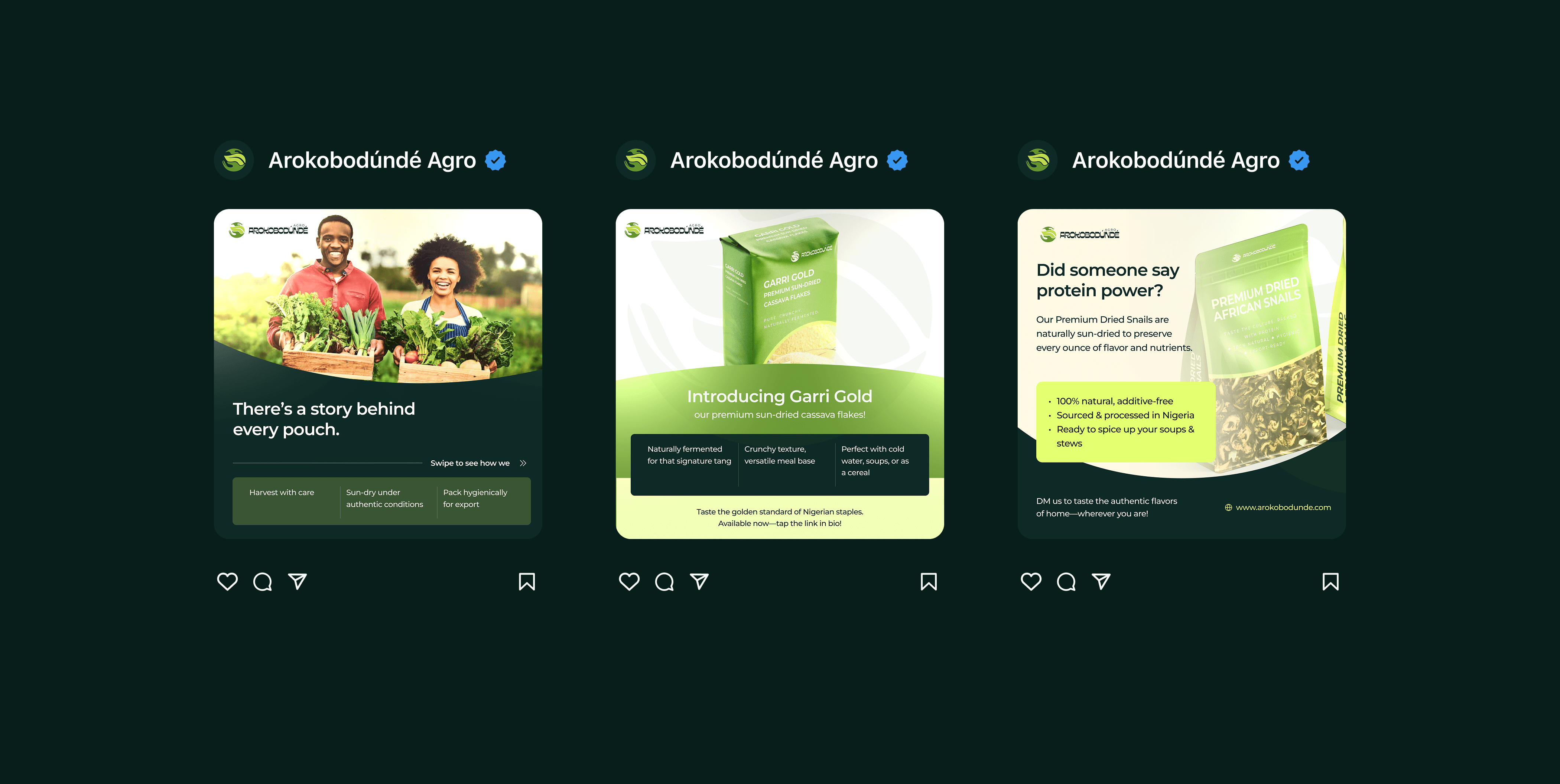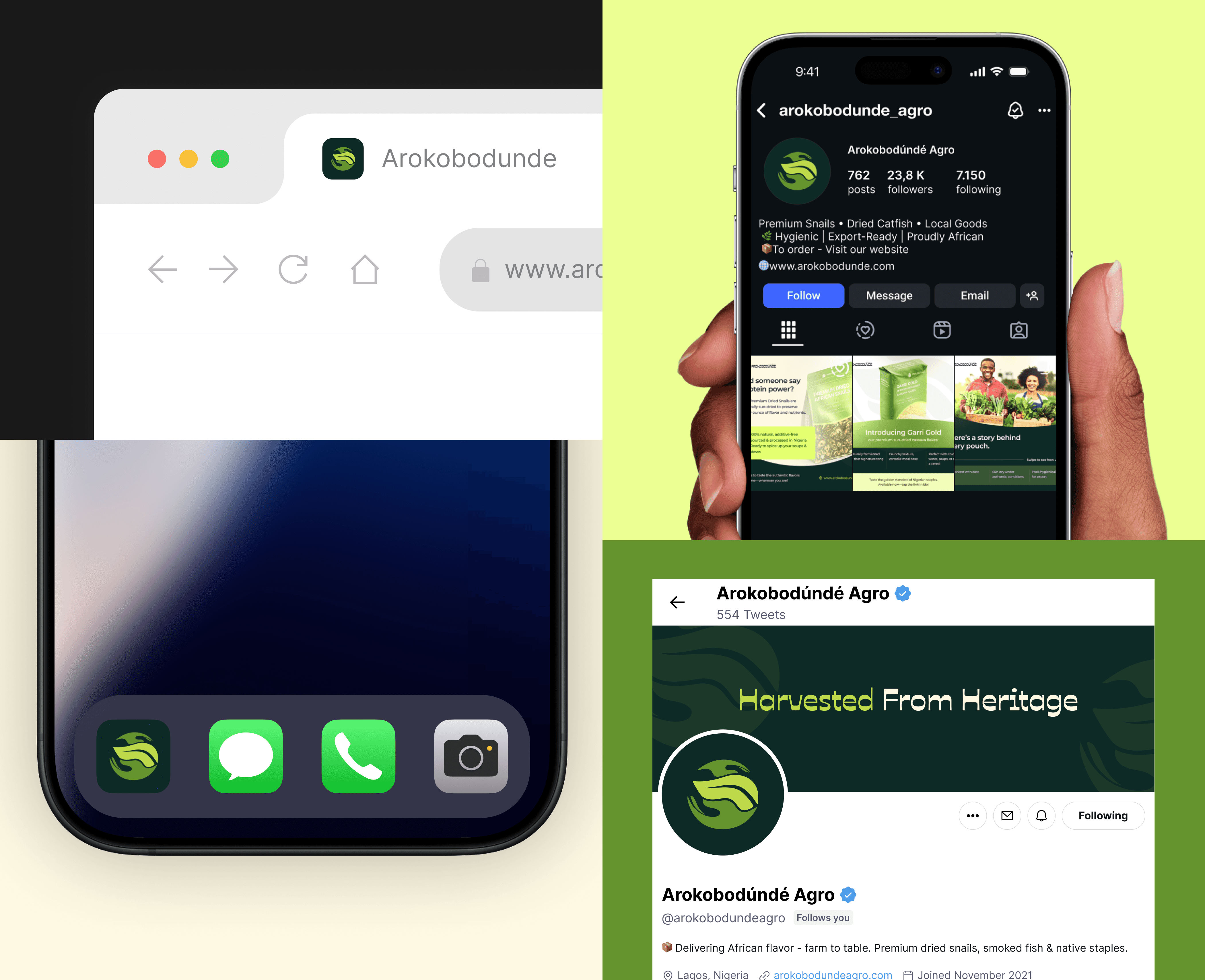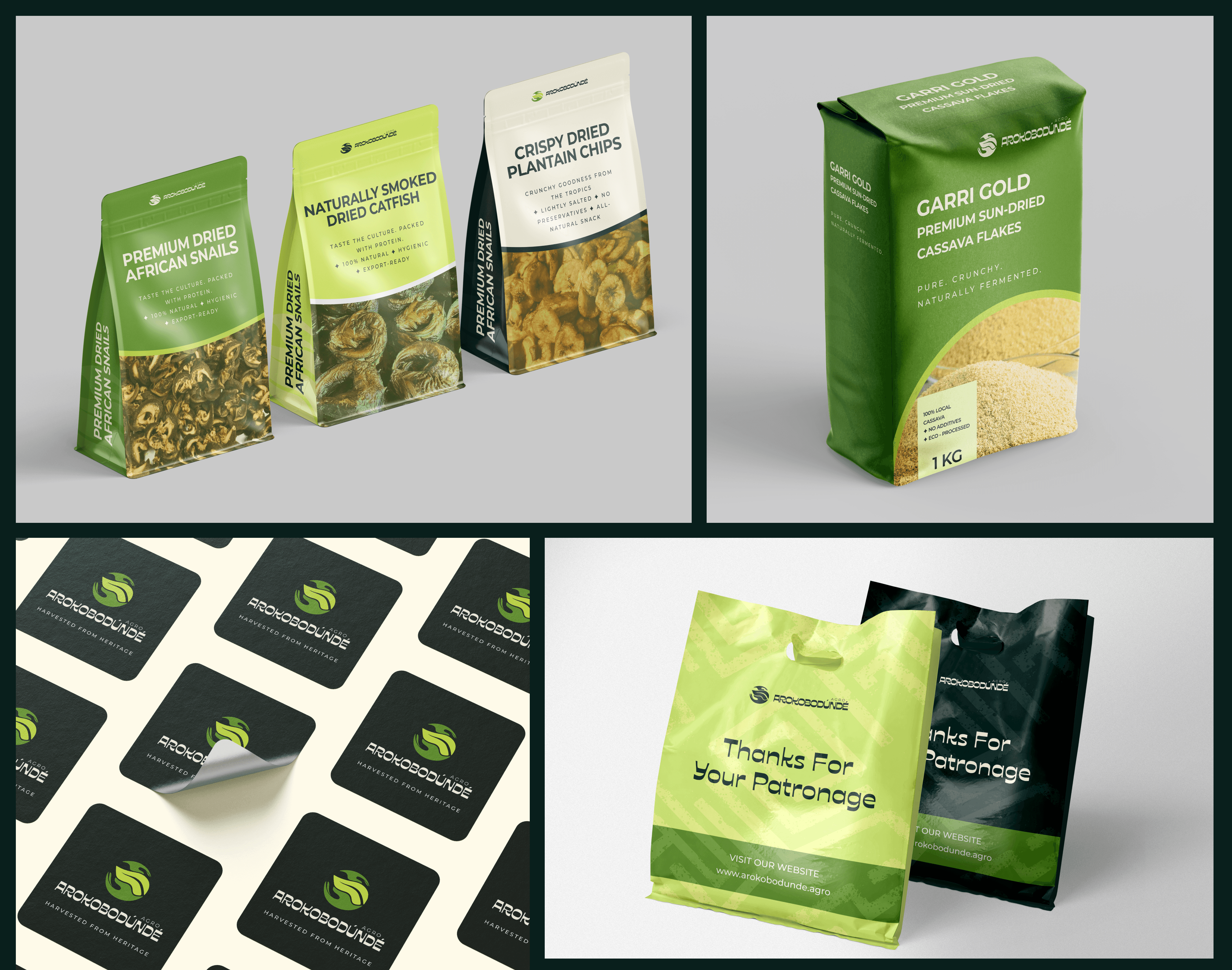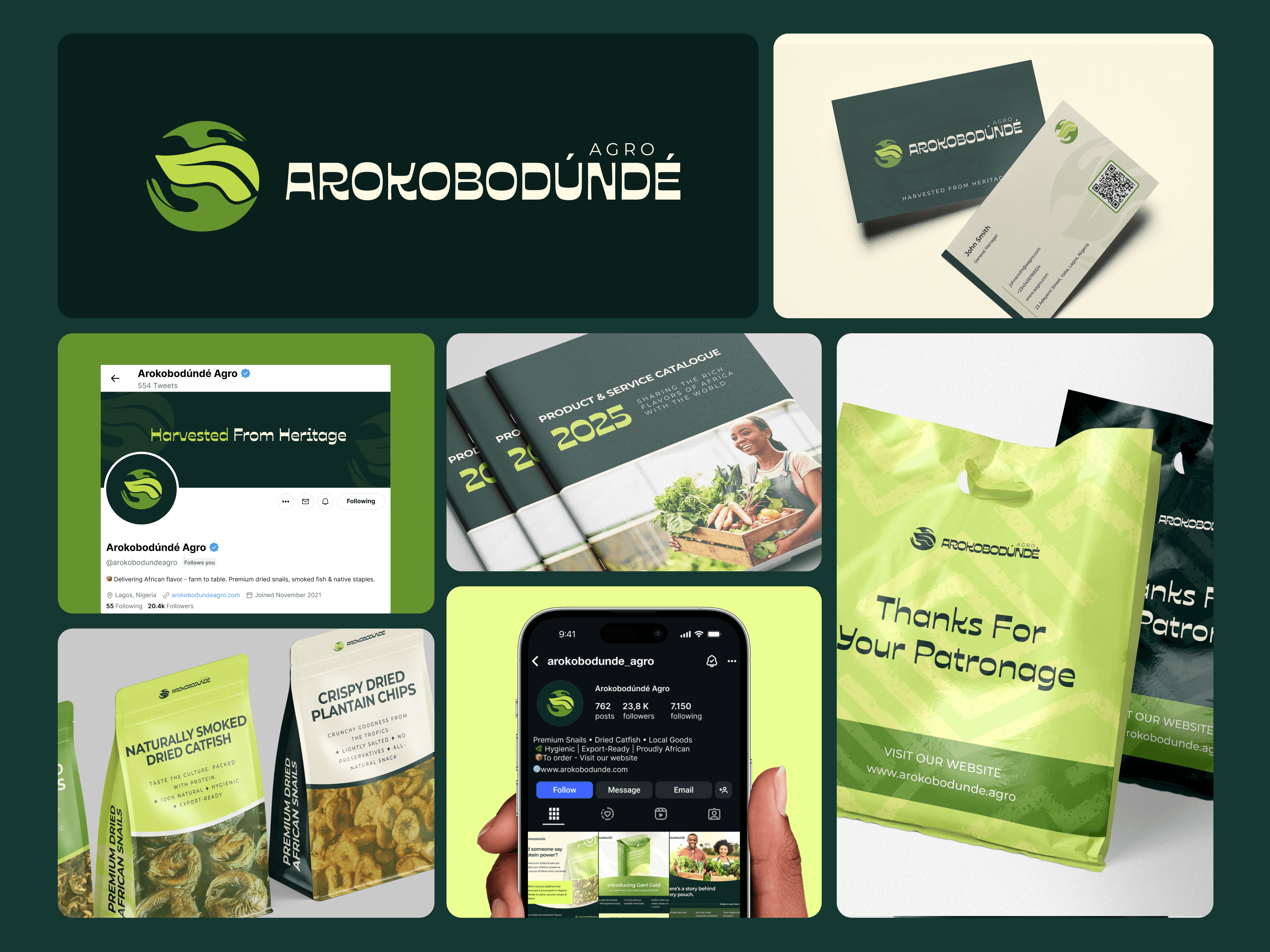 Brand identity project for Arokobodúndé; A Nigerian agrobusiness rooted in tradition, delivering premium snails and dried catfish to both local and global markets.