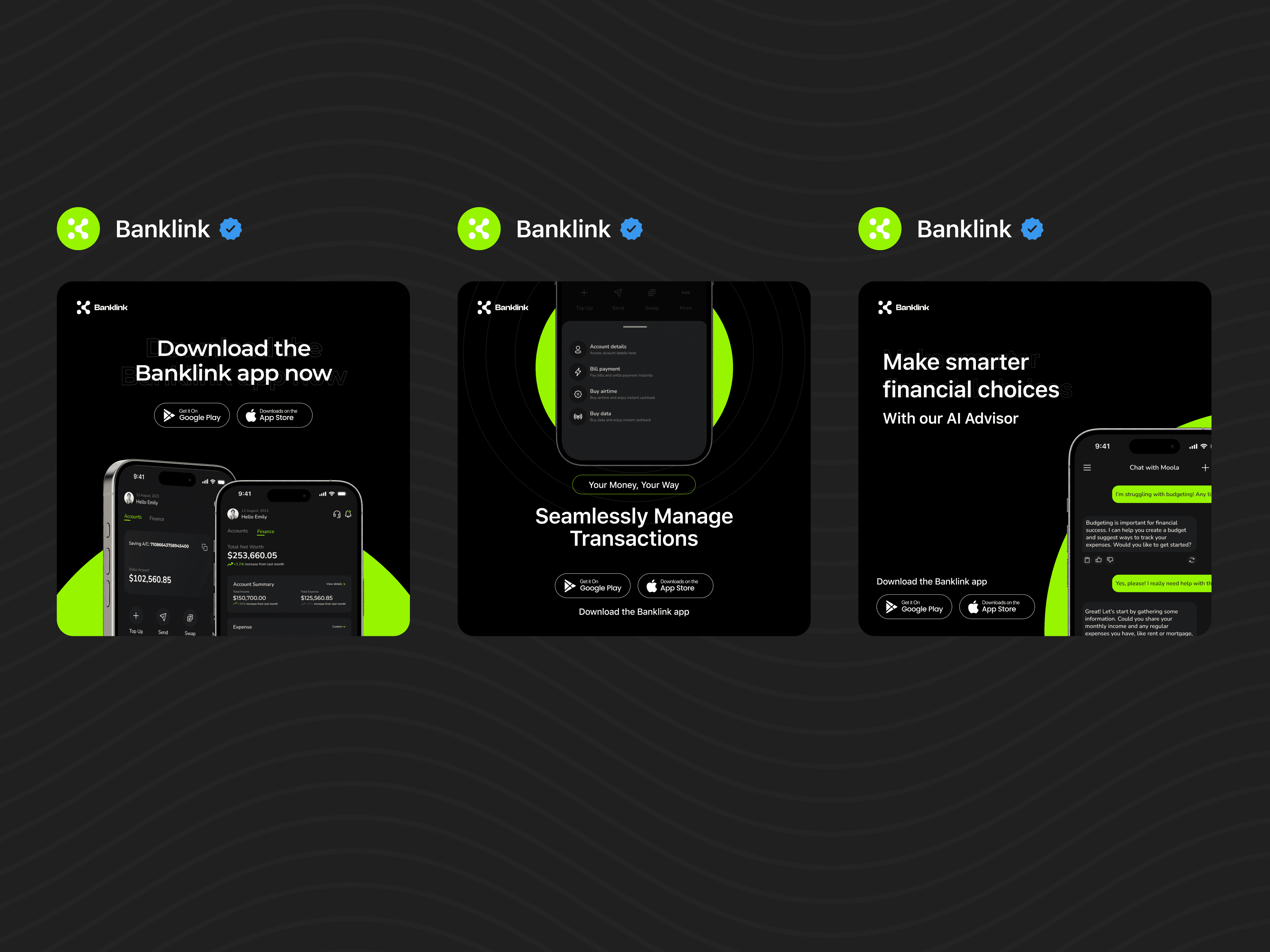 Worked on the brand identity design for Banklink, a modern banking app built to stand out with personalized experiences in a crowded fintech market.